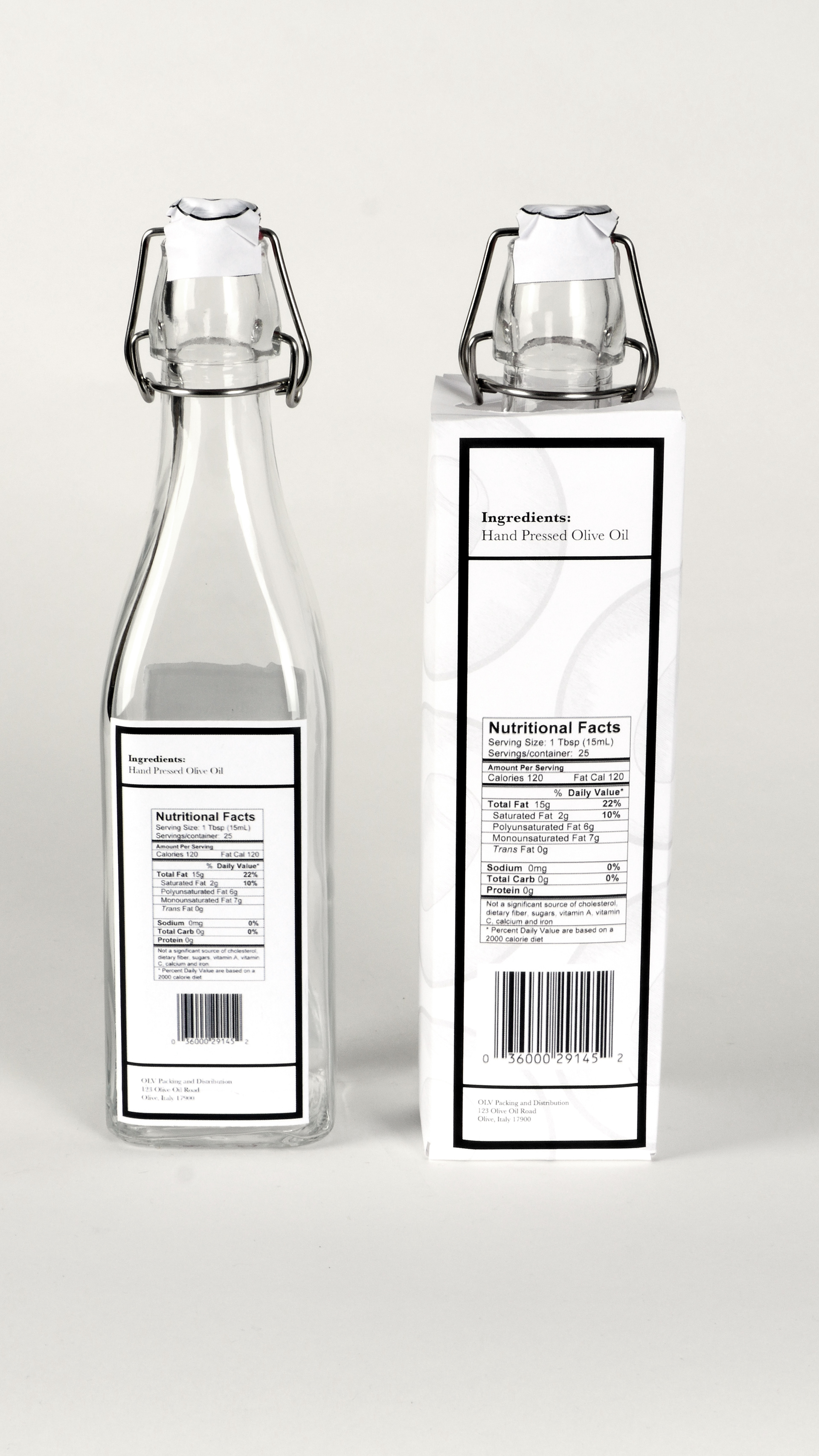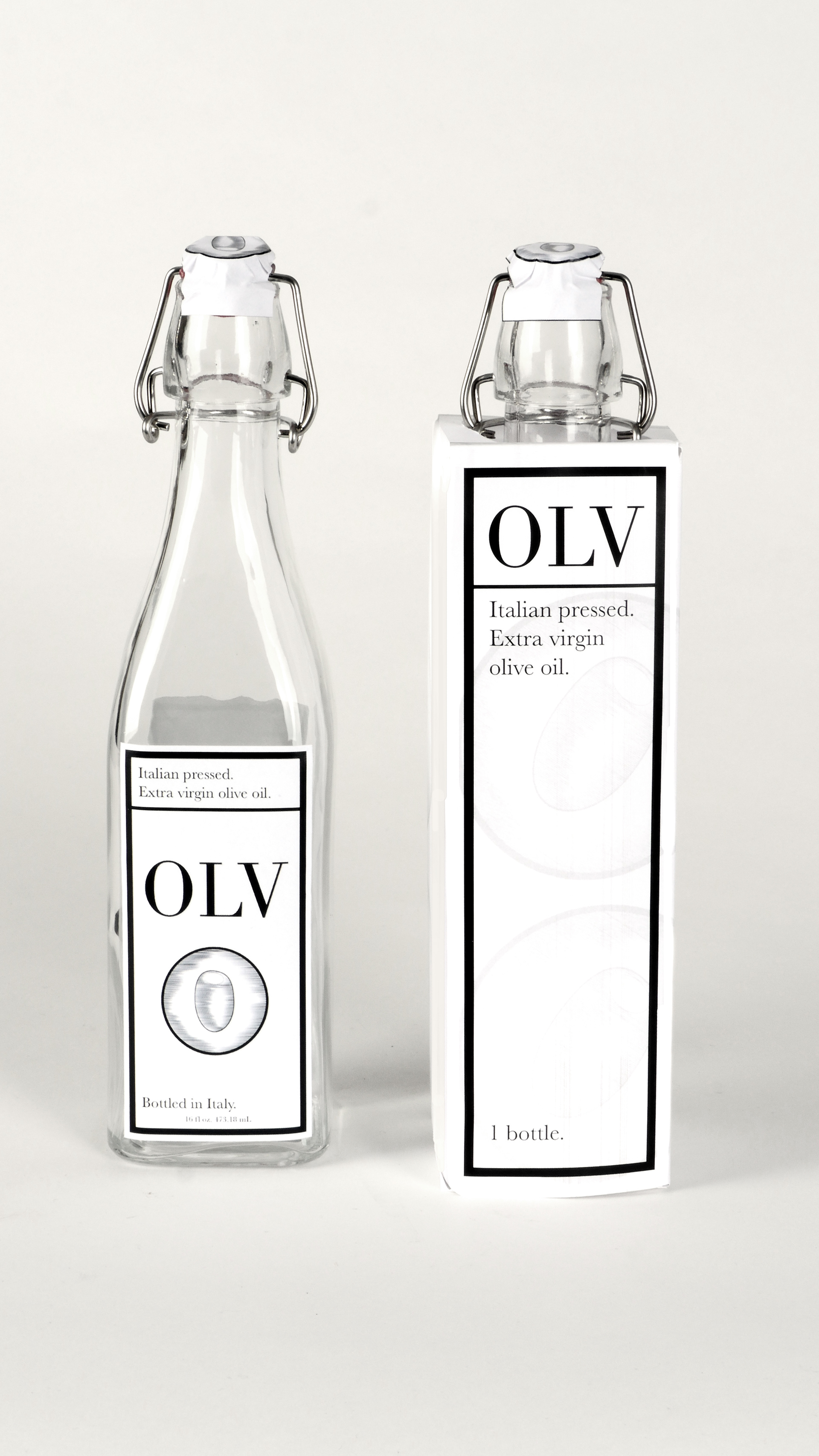 OLV is a project exploring the packaging aspect of branding for a fictitious company, for which we also designed the logo. The challenge was creating an olive oil brand that harkened to the traditional roots of the product but updated it in a way that would make it stand out on a shelf compared to other brands which often have heavy, dark colors and illustrations.